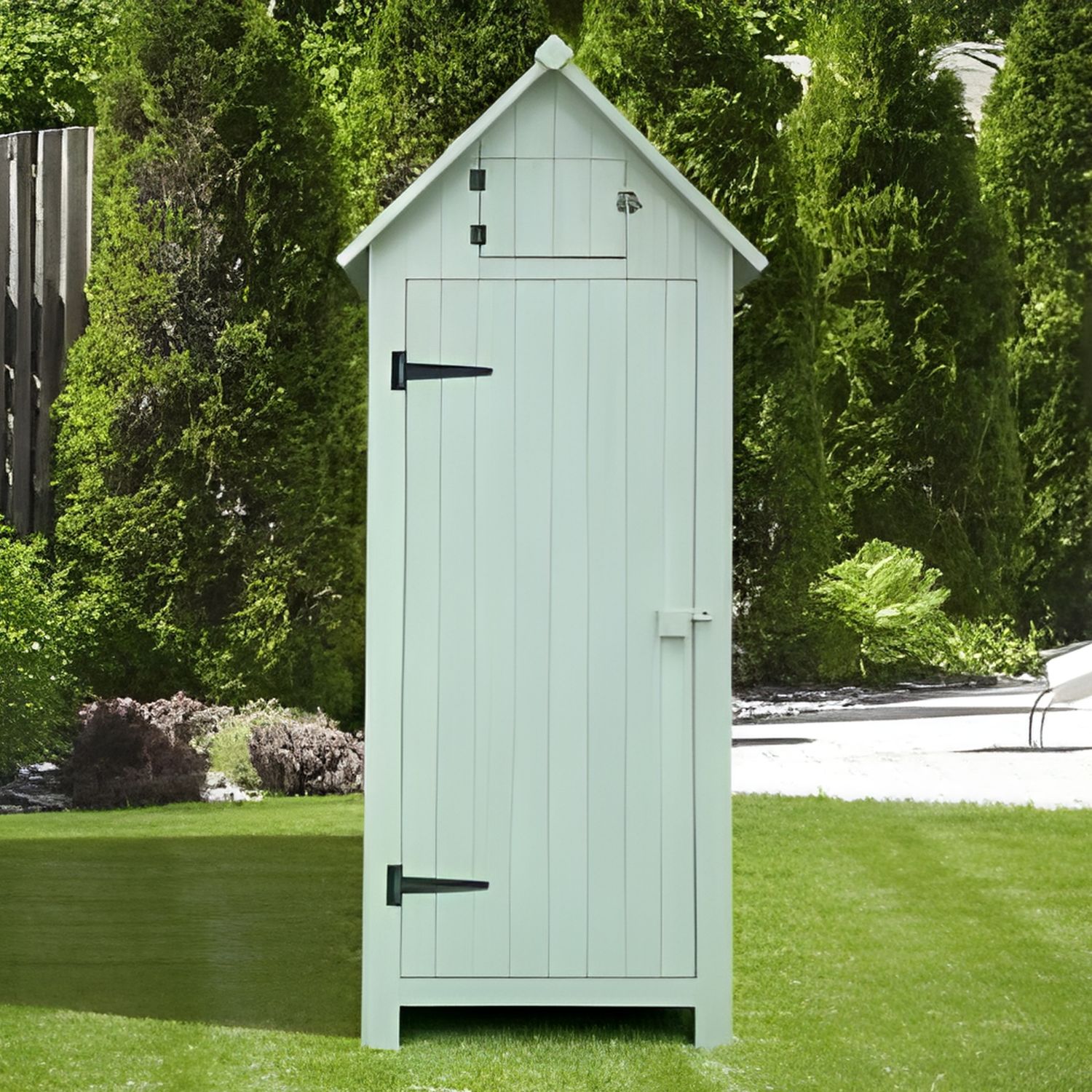 Maximize your outdoor storage space with this Versatile Vertical Outdoor Storage Shed. Designed with shelves and a lockable door, this shed provides secure and organized storage for your tools, equipment, and garden supplies.